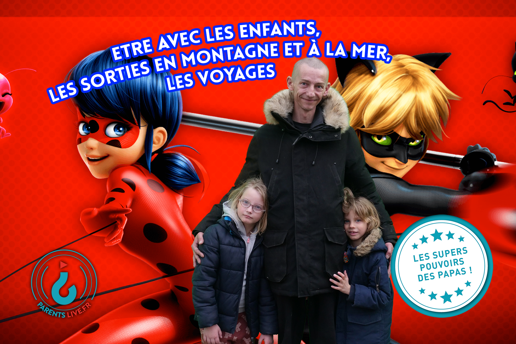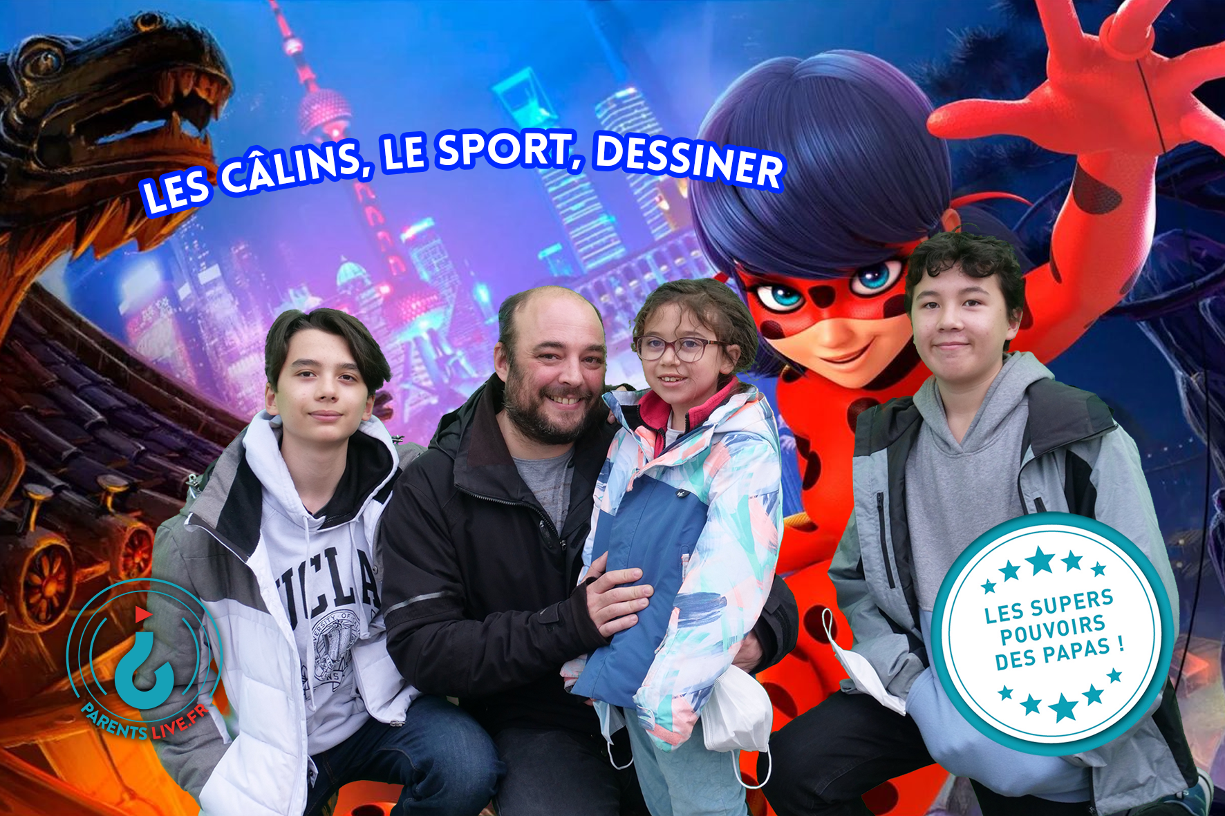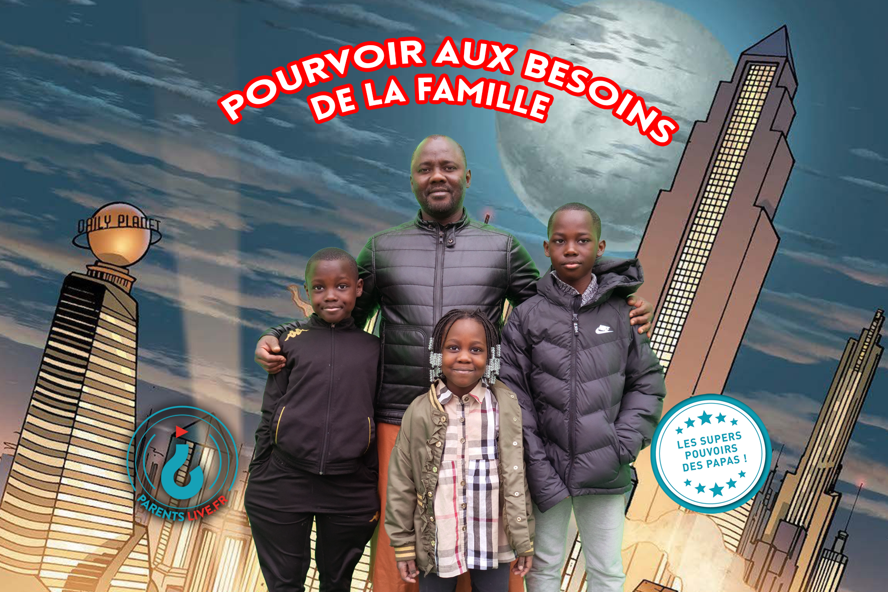 - Organisation de 3 séances de shooting photos sur le thème « les super pouvoirs des papas » en sortie d’école en fin de semaine et à la Maison de l’enfance Bachelard (une centaine de pères de famille rencontrés à l’issue de ces 3 temps de shooting photos).