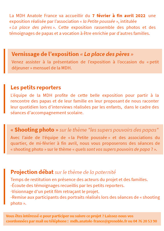 La Maison des Habitant-es Anatole France a initié depuis février 2022 un projet autour de la place des pères, en partenariat avec l’association la Petite Poussée.